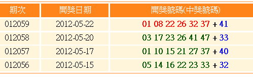 喇叭..2012大.借亂一下.我來猜一下今晚ㄉ號碼...[04.07.25.28.33][06.18.20.38.39][]04.09.20.33.36]3組牌...看看能中1之2之......