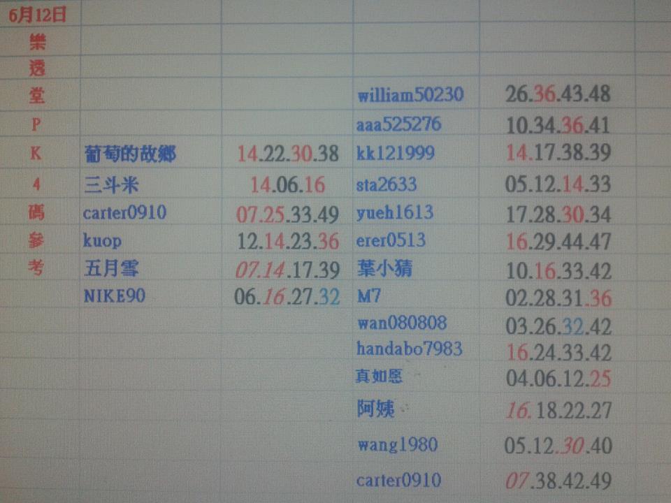 有請這6位大大.位樂透堂.出2碼葡萄的故鄉.2連霸2星原本想挑前10名但我為樂簡單化.我挑有開2星ㄉ前5名