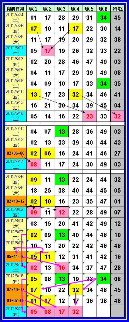 =12098->軌道下5與下6相同球號 == 01 / 14 / 32 / 36 / 38 / 43 /