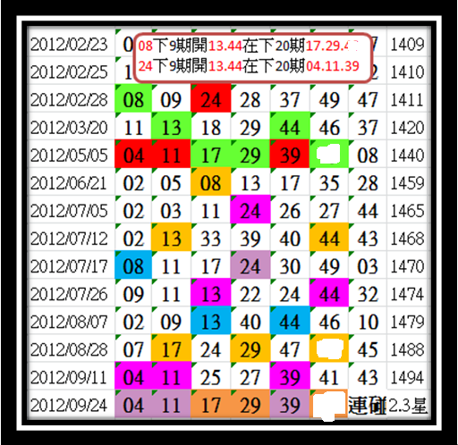 開獎日期:09月25日(012111期)