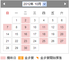 下下期 開獎日是 10/07 星期日 (星期六停)