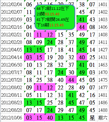期數 = 12115-> [6/7] 預測碼 == 18 / 30 / 40 /