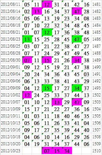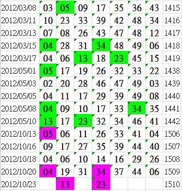 開獎日期:10月23日(012122期)
