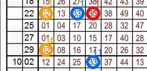 d-e=f / 35-33=02 / 02-33-35 / 為三中?? = 下幾期開出