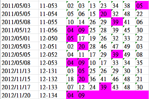 開獎日期:11月20日(012134期)