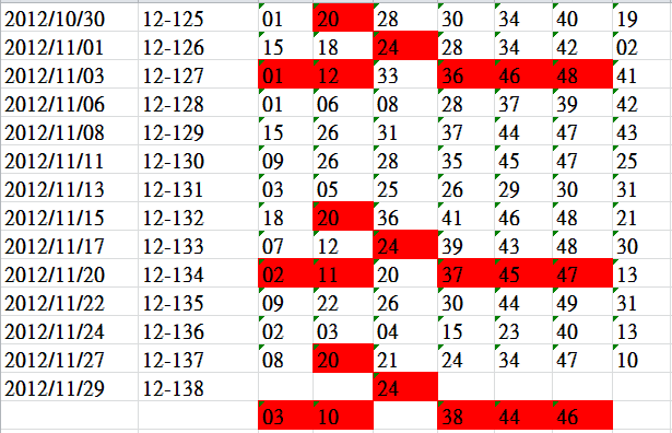 開獎日期:11月29日(012138期)