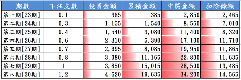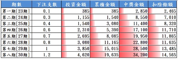 以上都每期加0.1車,這樣每一期都有增加餘額,也是沒摳摳的人要下的累積金額期數明細,以自己的子彈量力。