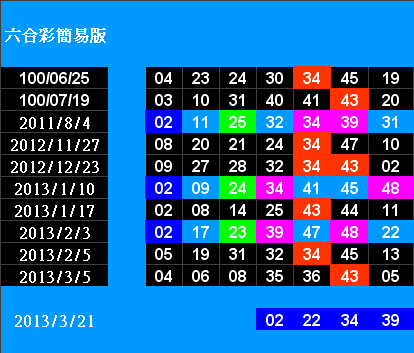 開獎日期:03月23日(013033期)