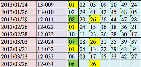 > 013033 / 2013-03-23 / 06 / 09 / 17 / 25 / 33 / 42 / [ 特 27 ] = 27_28_33_