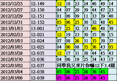 推薦獎號:05,06,25,26,36,45