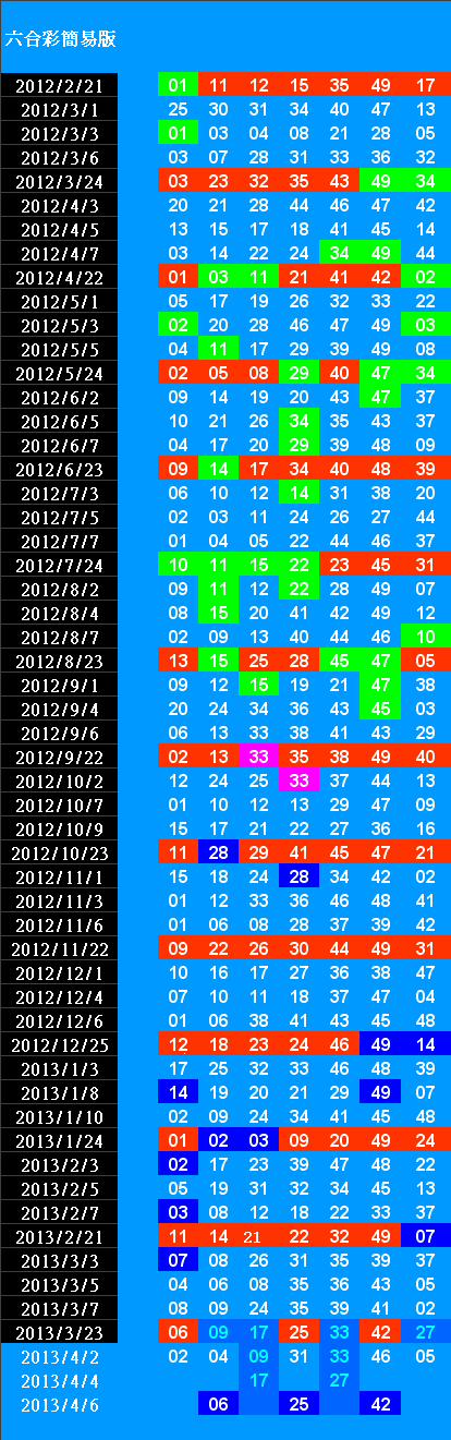 => 2012-09-22 / 02 / 13 / 33 / 35 / 38 / 49 / [ 特 40 ] => 13 / 33 / 49 /