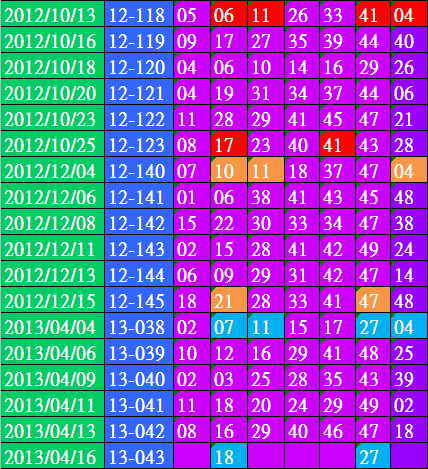 開獎日期:04月16日(013043期)
