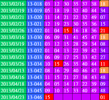 開獎日期:0423(013046期)
